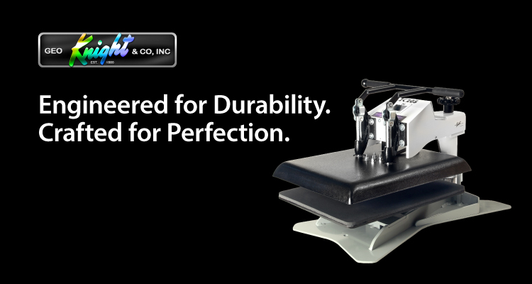 When it comes to professional heat transfer equipment, Geo Knight has set the industry standard for durability, reliability, and precision. Proudly built 100% in the USA, each press is engineered with quality craftsmanship and backed by responsive, same-day U.S.-based support, so your production keeps moving, job after job.